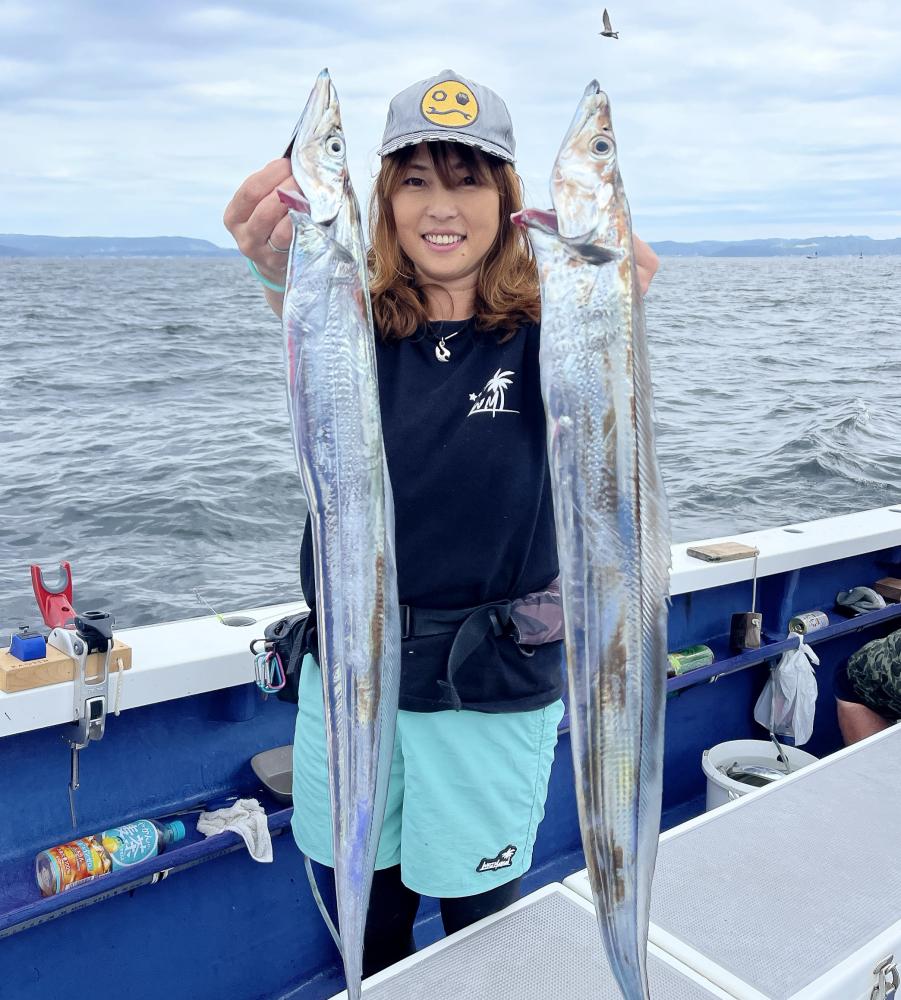 中盤以降は観音崎沖周辺にて!!こちらでもタチウオの活性良さそうで喰い付き良しでした✨誘いがマッチした方は連発モードで良いペースで釣れましたよo(^▽^)o